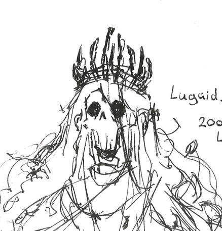 The man who killed Cú Chulainn. He has been alive for more than 2000 years, but his body has been rotting away slowly. The crown he wears is made of his own fingers